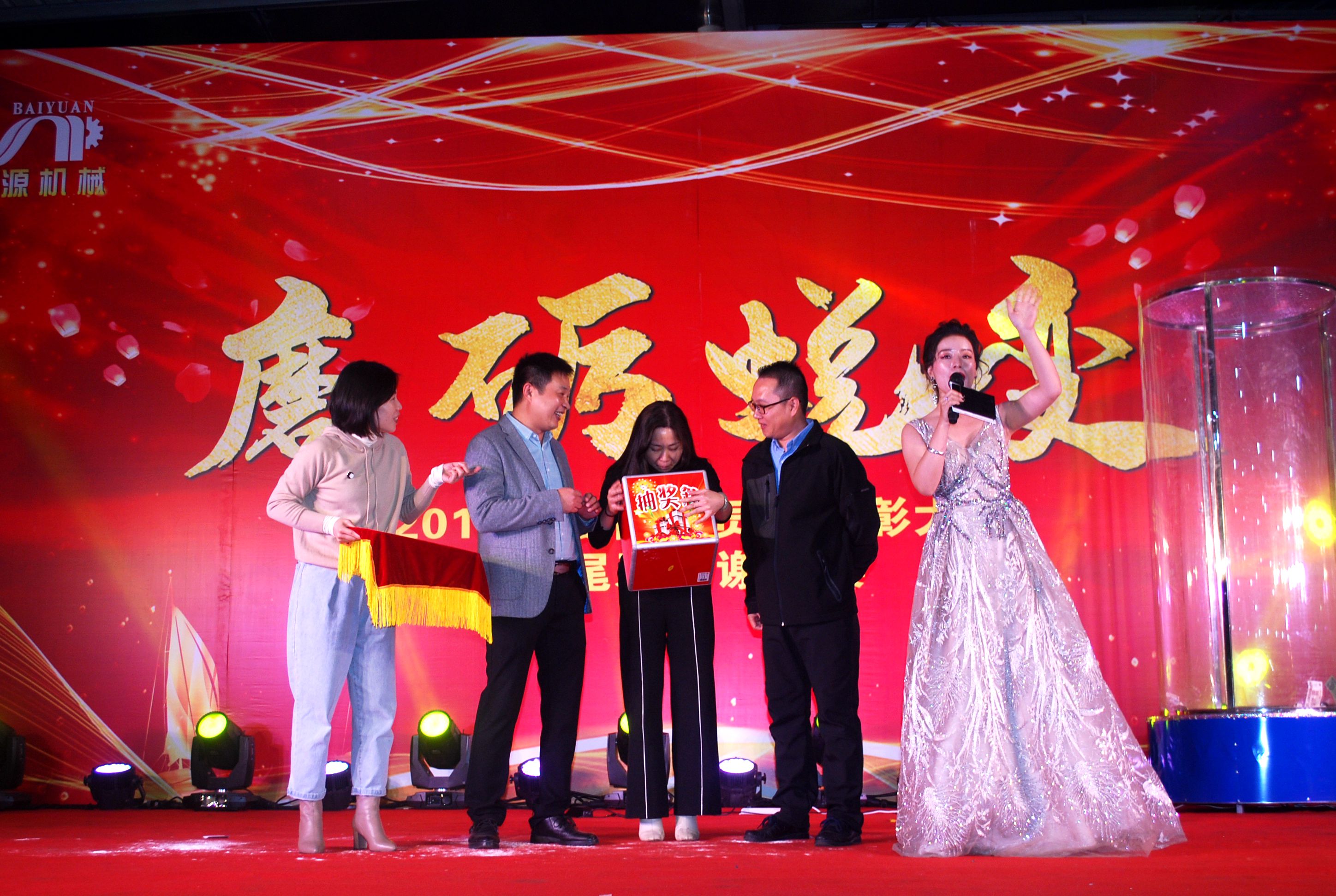 除了精彩絕倫的視聽盛宴,佰源尾牙晚宴也少不了激動人心的抽獎時(shí)刻。在全場所有人員的陣陣掌聲中,我們的工作人員抱上抽獎箱,由抽獎嘉賓為我們抽出了特等獎、一至五等獎并為中獎?wù)哳C發(fā)獎品。其中,特等獎的抽取最引人注目,全場歡呼不斷,都希望好彩頭可以降臨到自己身上,最終由號碼為086的——一位已在佰源工作了七年半的員工獲此獎項(xiàng)。又“發(fā)”又“順”,不僅預(yù)示該員工來年有一個(gè)好彩頭,也預(yù)示佰源在新的一年里也討了一個(gè)好兆頭。